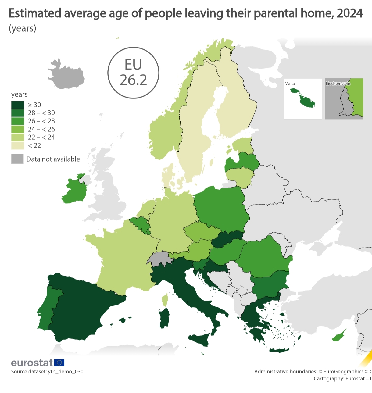 ΠΠΎΠ·ΠΆΠ΅ Π²ΡΠ΅Π³ΠΎ Π΄Π΅ΡΠΈ ΡΡ ΠΎΠ΄ΡΡ ΠΈΠ· ΡΠΎΠ΄ΠΈΡΠ΅Π»ΡΡΠΊΠΎΠ³ΠΎ Π΄ΠΎΠΌΠ° Π² Π₯ΠΎΡΠ²Π°ΡΠΈΠΈ (31,3 Π³ΠΎΠ΄Π°), Π‘Π»ΠΎΠ²Π°ΠΊΠΈΠΈ (30,9), ΠΡΠ΅ΡΠΈΠΈ (30,7), ΠΡΠ°Π»ΠΈΠΈ (30,1) ΠΈ ΠΡΠΏΠ°Π½ΠΈΠΈ (30,0). Π‘Π°ΠΌΡΠΉ Π½ΠΈΠ·ΠΊΠΈΠΉ ΡΡΠ΅Π΄Π½ΠΈΠΉ Π²ΠΎΠ·ΡΠ°ΡΡ Π±ΡΠ» ΠΎΡΠΌΠ΅ΡΠ΅Π½ Π² Π€ΠΈΠ½Π»ΡΠ½Π΄ΠΈΠΈ (21,4 Π³ΠΎΠ΄Π°), ΠΠ°Π½ΠΈΠΈ (21,7) ΠΈ Π¨Π²Π΅ΡΠΈΠΈ (21,9).